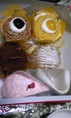 しかし、左端の栗ケーキが、異常な甘さだったらしいです。